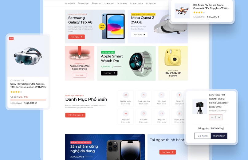 Phù hợp cho các cửa hàng, chuỗi bán lẻ đặc sản Quảng Ninh (hải sản, ngọc trai, đồ lưu niệm…) hoặc các sản phẩm tiêu dùng. Loại hình này chú trọng vào tính năng giỏ hàng, thanh toán trực tuyến, quản lý kho hàng và giao diện trực quan để thúc đẩy quyết định mua sắm của khách hàng.